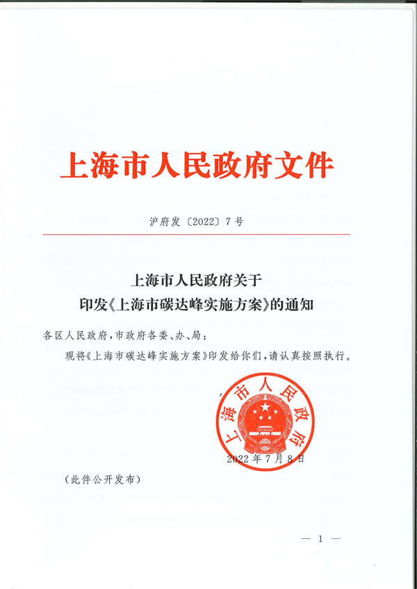 现将《上海市碳达峰实施方案》印发给你们,请认真按照执行。